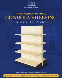 Customers’ shopping, browsing, and purchasing decisions are directly affected by how products are displayed in retail. In addition to organizing goods, smart shelving directs traffic, boosts visibility, and boosts sales. Our gondola shelving solutions at JF Fixtures & Design are designed to help retailers build adaptable, high-performing store environments that evolve as their business expands.